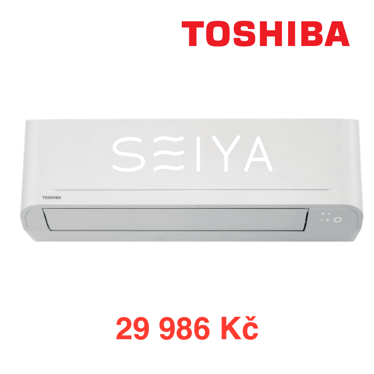 Toshiba Seiya NEW oblíbený model s vynikajícím poměrem cena/kvalita se základním čištěním vzduchu, wifi modul je volitelný, hlučnost vnitřní jednotky od 19 dB. Intuitivní IR ovladač. Nabízí se i levnější varianta Seiya Classic za 23 990 Kč, která není vhodná k vytápění. Cena je včetně montáže a materiálu.